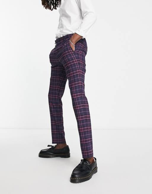 Twisted Tailor Ladd suit pants in navy and pink tartan check