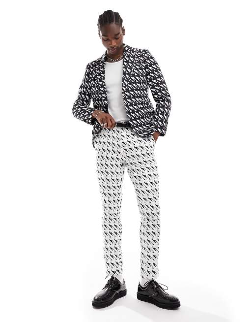 Twisted Tailor Munro houndstooth suit pants in black and white