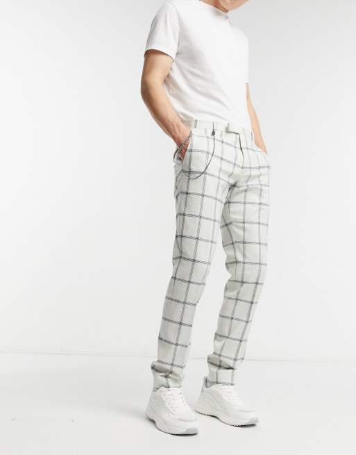 Twisted Tailor skinny pants with chain in white windowpane check