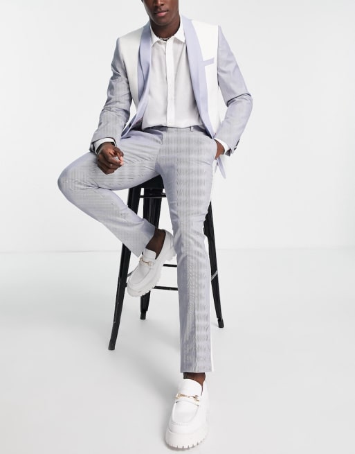 Twisted Tailor Triptych skinny suit set in white and blue stripe panels