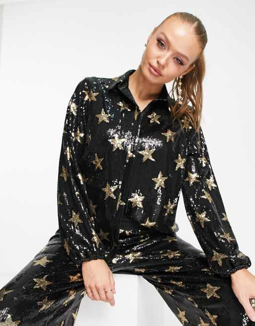 Twisted Wunder oversized shirt in sequin star print (part of a set)