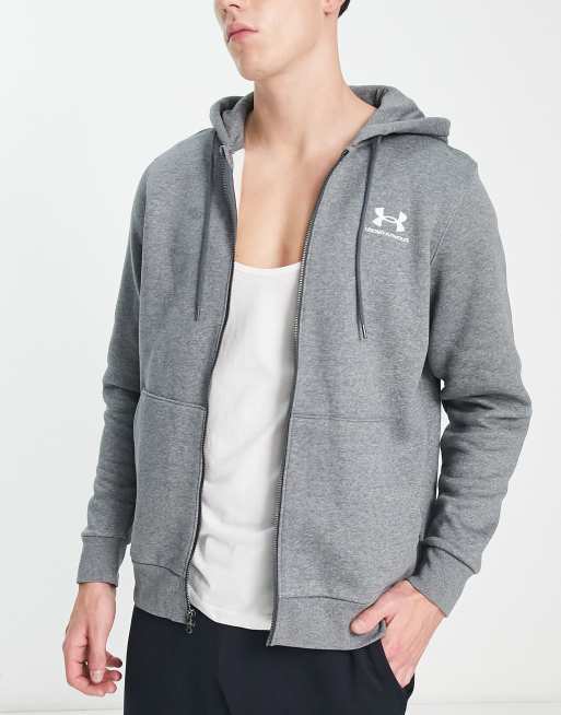 Under Armour Training Essential fleece full zip hoodie in gray marl