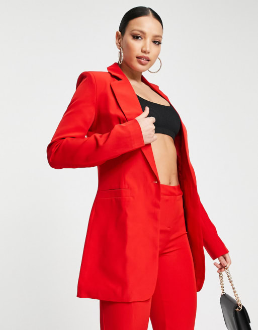 Unique21 Tall paperbag waist shorts and blazer set in red