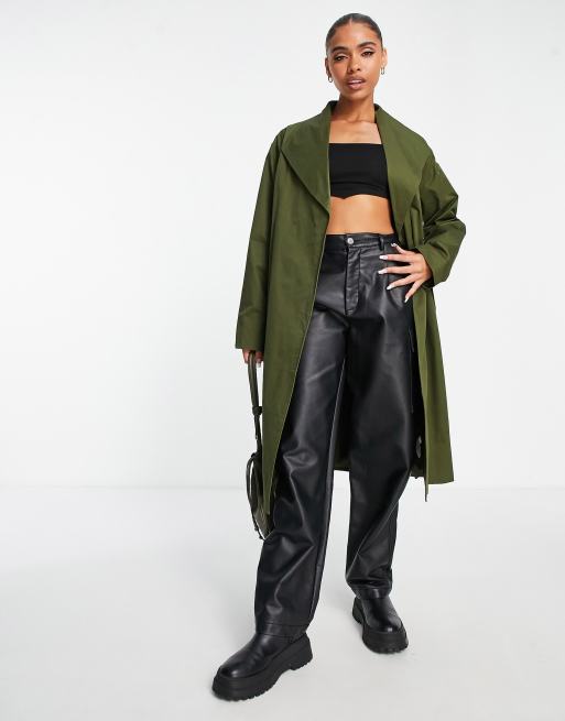 Unique21 longline duster trench coat in khaki