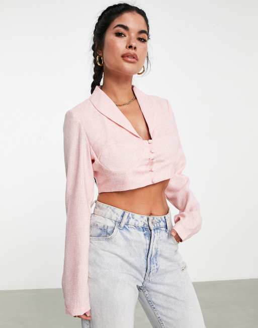 Unique21 tweed corset cropped blazer in pink (part of a set)