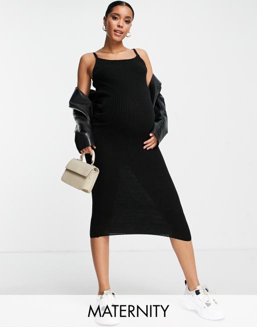Urban Bliss Maternity knitted rib cami dress in black (part of a setS)