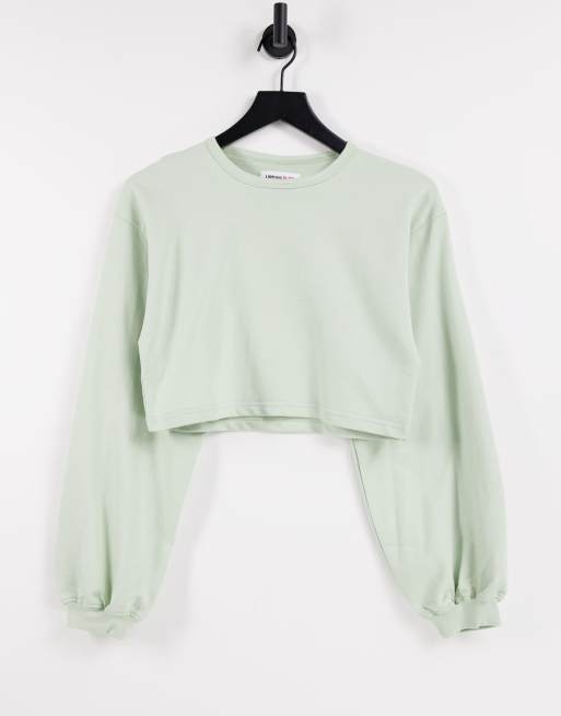 Urban Bliss co-ord volume sleeve crop sweatshirt in green