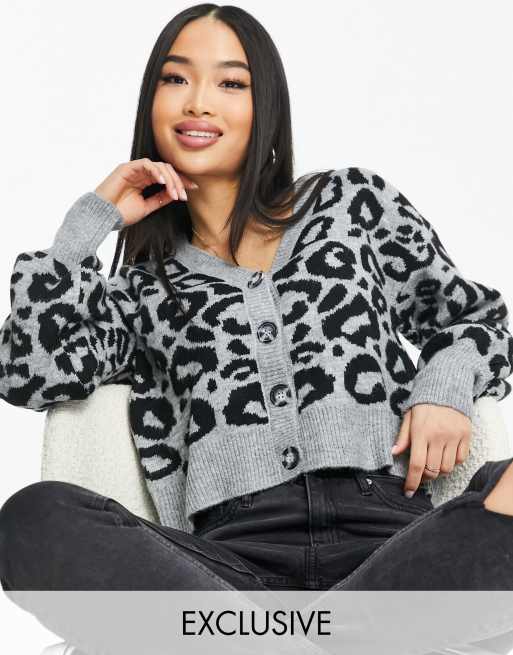 Urban Bliss knitted leopard print cardigan in grey (part of a set)