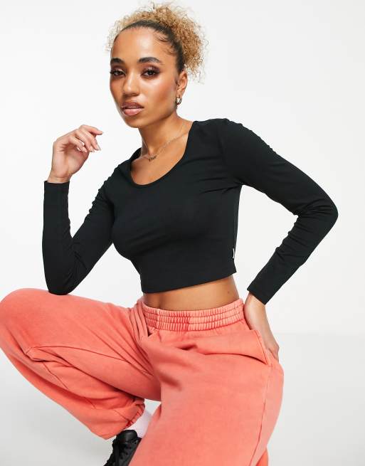 Urban Classics cropped long sleeve scoop neck t-shirt in black