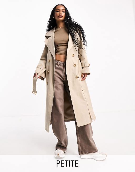 Urban Code Petite longline oversized trench coat in beige