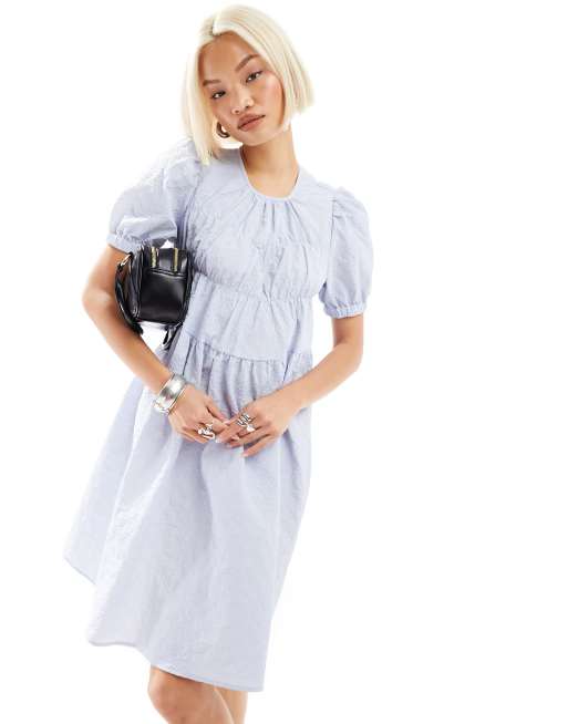 Urban Revivo puff sleeve textured mini smock dress in sky blue