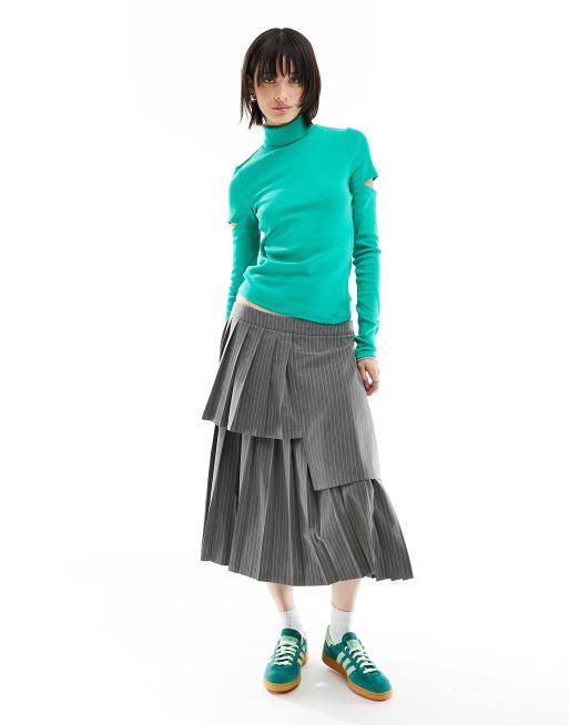 Urban Revivo split sleeve roll neck top in aqua green