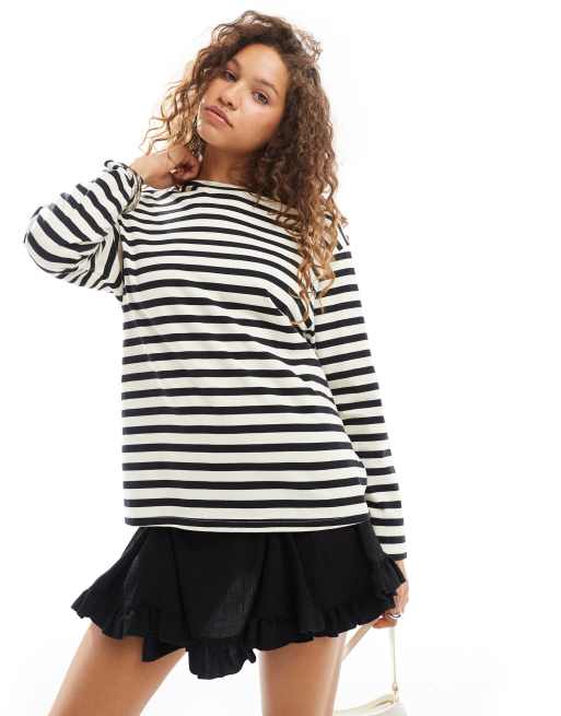Urban Revivo striped oversized long sleeve t-shirt in multi