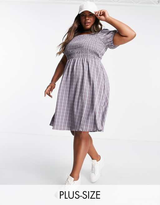 Urban Threads Plus checked summer dress with shirring