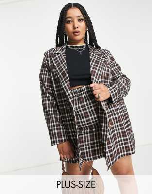 Urban Threads Plus single breasted blazer in black and white check (part of a set)