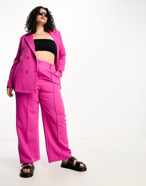 Urban Threads Plus tailored pants in hot pink (part of a set)