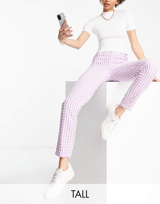Urban Threads Tall straight leg pants in lilac gingham