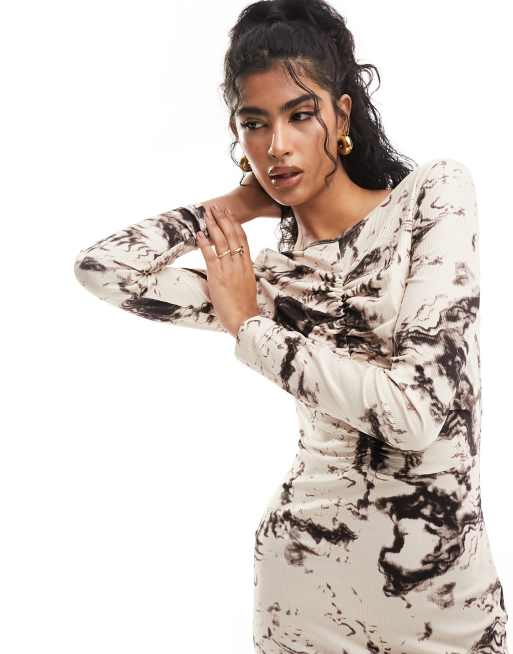 Urban Threads bodycon maxi dress with ruched front in dye pattern