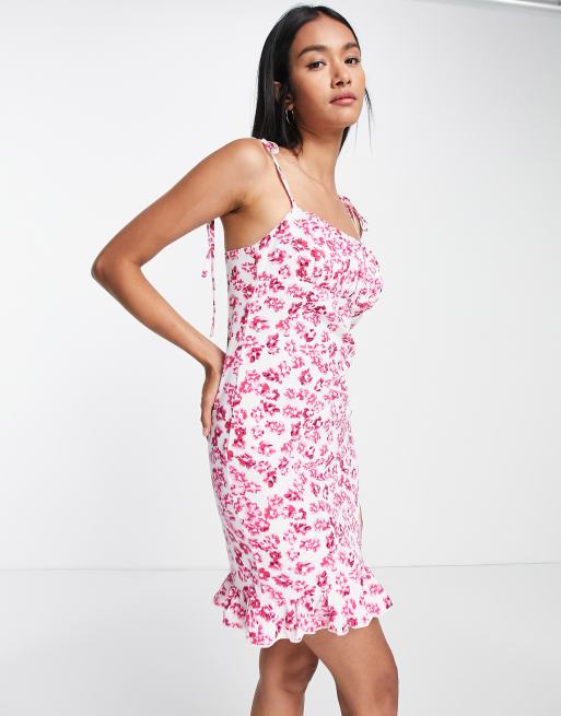 Urban Threads cami strap mini dress with ruched bust in pink floral print