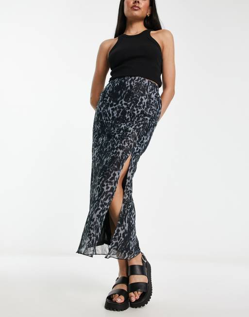 Urban Threads mesh midaxi skirt with lettuce hem in grey leopard print