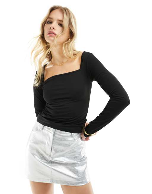 Urban Threads square neck top in black
