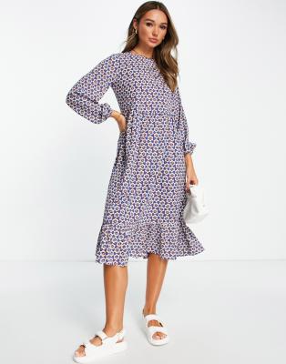 Urban Threads tiered midi smock dress in 70s floral print