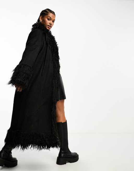 Urban Code Plus longline faux shaggy fur jacket in black
