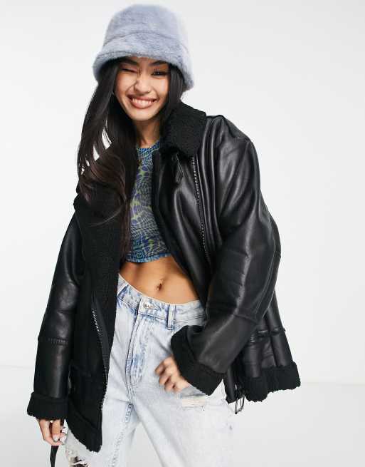 Urbancode faux leather aviator biker jacket with faux fur