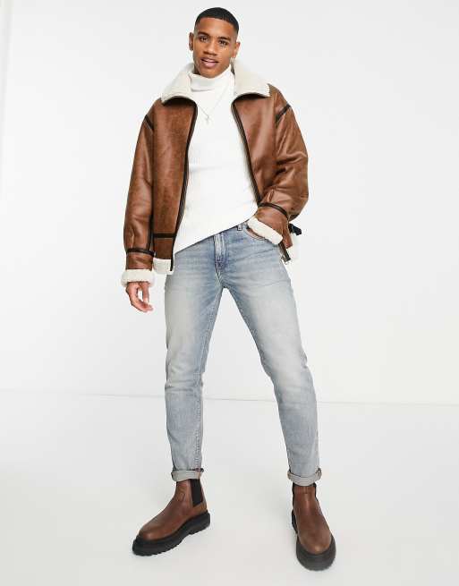 Urbancode faux shearling aviator jacket in brown