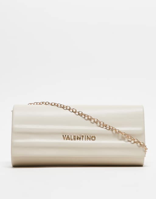 Valentino Sofie minimal clutch bag with detachable chain strap in cream