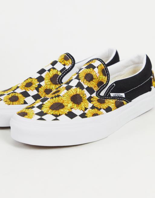 Vans Classic slip-on sunflower embroidery sneakers in black and white