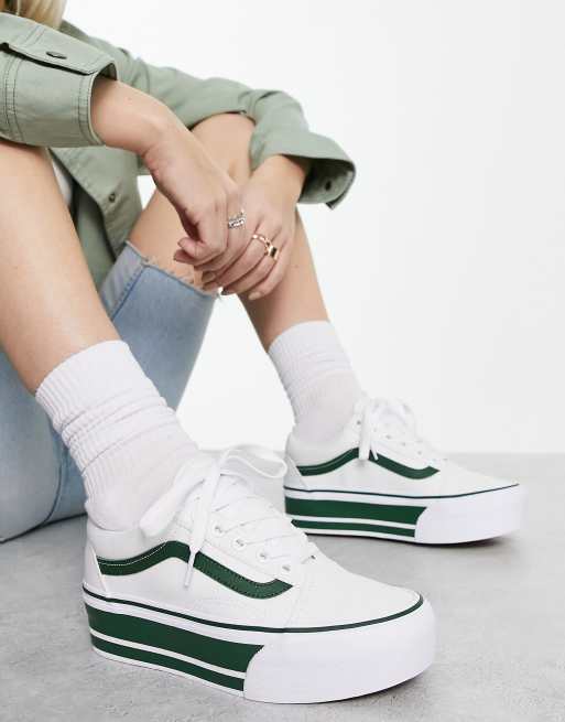 Vans Old Skool Stackform sneakers in white with green sports stripes
