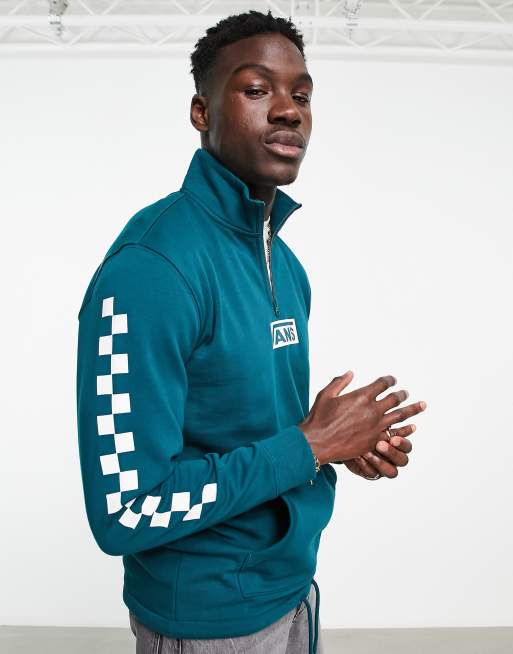 Vans Versa standard central logo quarter zip sweatshirt in teal