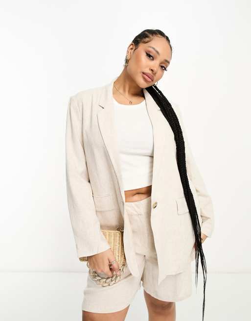 Vero Moda Curve relaxed linen mix suit blazer in oatmeal (part of a set)