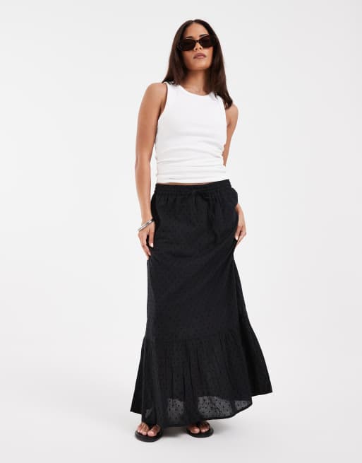 Vero Moda Petite dobby texture boho maxi skirt in black