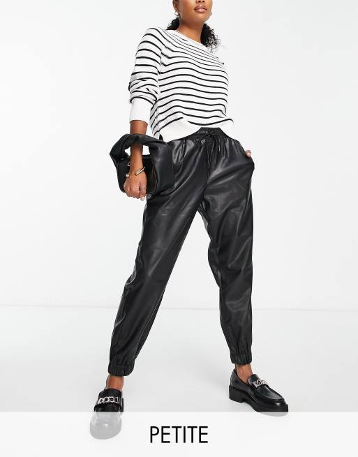Vero Moda Petite leather look tie waist trackies in black
