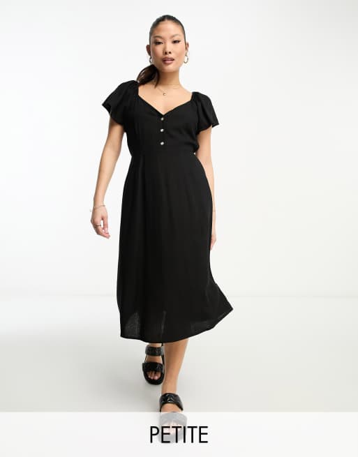 Vero Moda Petite linen touch flutter sleeve midi dress in black
