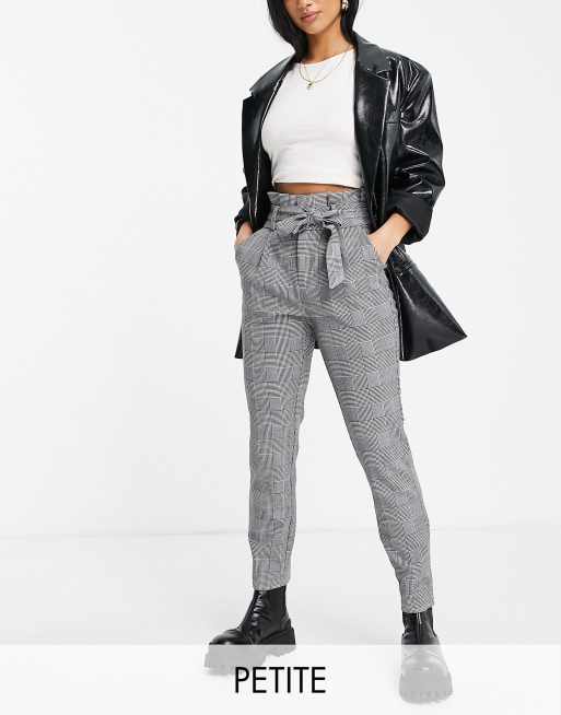 Vero Moda Petite paperbag pants in grey check