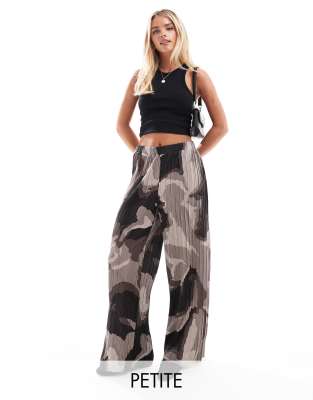 Vero Moda Petite plisse wide leg pants in brown abstract print (part of a set)