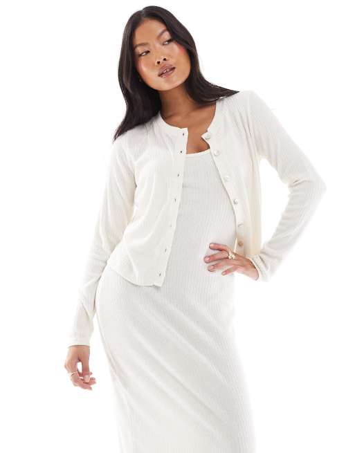 Vero Moda Petite soft ribbed cardigan in cream melange (part of a set)