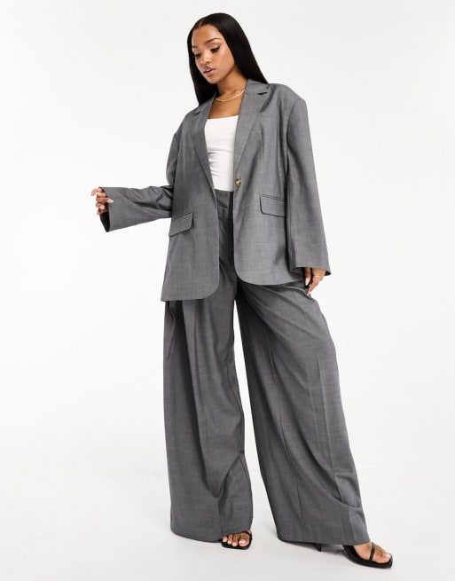 Vero Moda Aware oversized blazer and wide leg pants set in grey