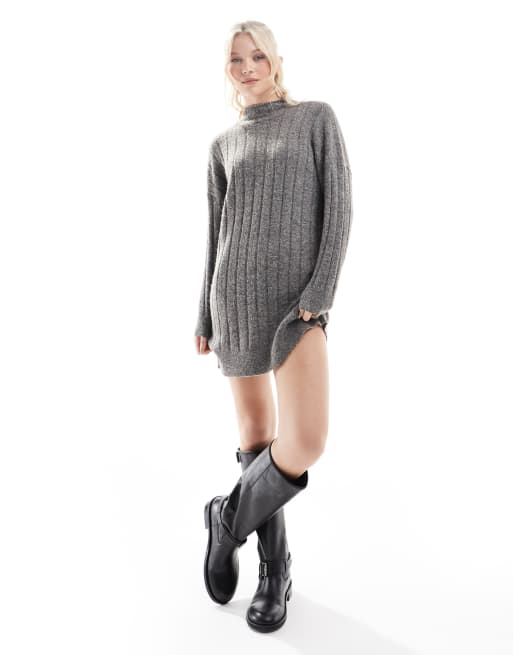 Vero Moda oversized ribbed knitted mini dress in dark grey melange