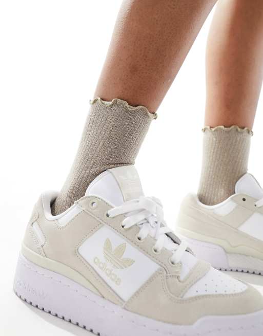 Vero Moda ribbed glitter socks with frill edge in neutral