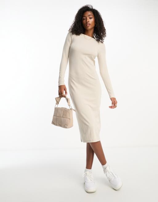 Vero Moda ribbed long sleeve midi dress in cream