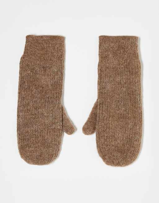Vero Moda ribbed mittens in brown melange
