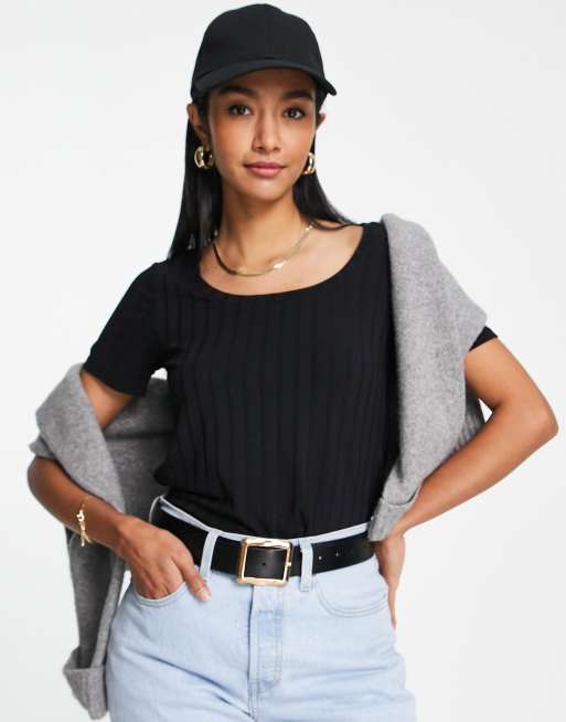 Vero Moda ribbed scoop neck t-shirt in black