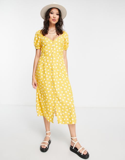 Vero Moda short puff sleeve v neck midi dress in yellow