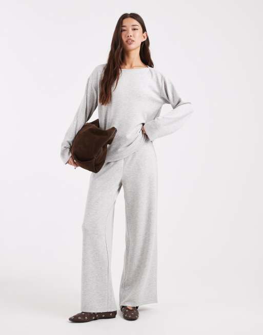 Vero Moda soft jersey boat neck sweatshirt and wide leg pants set in grey melange