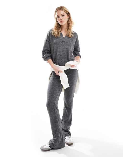 Vero Moda supersoft polo top and flare pants set in dark grey melange