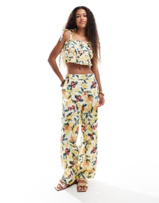 Vero Moda tie shoulder ruffle crop top and wide leg pants set in summer fruit print